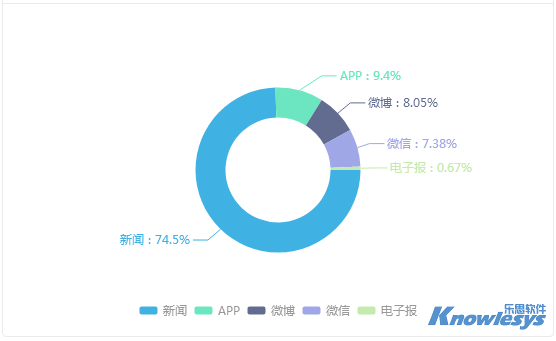 乐思软件舆情监测数据显示,截至目前此次舆情监测媒体构成类型中,排在采集来源榜前三位的是新闻、APP和微博。新闻是重要的信息传播平台,数据占比为74.50%,APP和微博分别占9.40%和8.05%。
