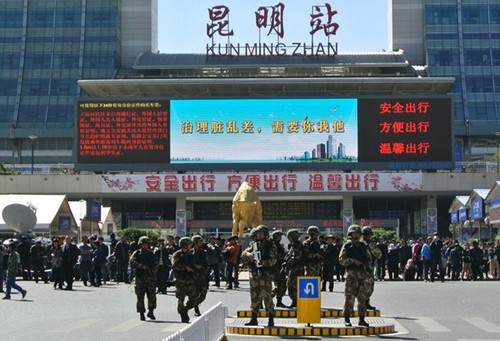 公安部透露,3月1日晚发生在云南昆明火车站的严重暴力恐怖案,经公安部组织云南、新疆、铁路等公安机关和其他政法力量40余小时的连续奋战,已于3月3日下午成功告破。现已查明,该案是以阿不都热依木·库尔班为首的暴力恐怖团伙所为。该团伙共有8人(6男2女),现场被公安机关击毙4名、击伤抓获1名(女),其余3名已落网。