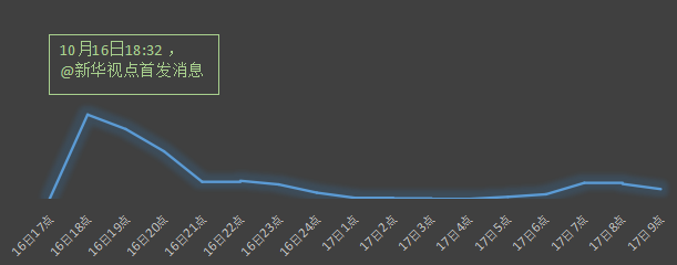 10月16日18:32,@新华视点首发消息,随后@人民日报、@央视新闻、@新华网、@人民网等各大媒体官微纷纷报道该消息,引起网友热议,舆情萌发;在当日18点多,舆情达到最高峰;截至17日9点左右,舆情总体呈下降趋势,舆论渐渐平息。