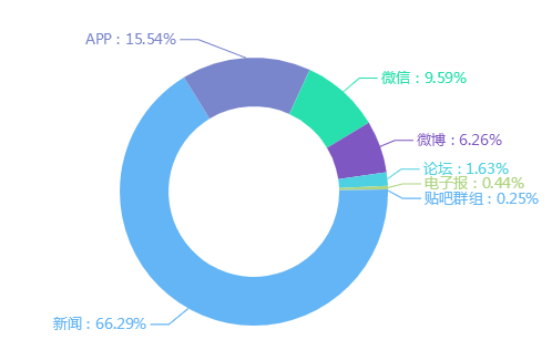 截至10月18日,此次舆情传播媒介分布中,排在采集前三位的是新闻、APP和微信。新闻数据占比为66.29%,APP和微信分别占15.54%和9.59%。
