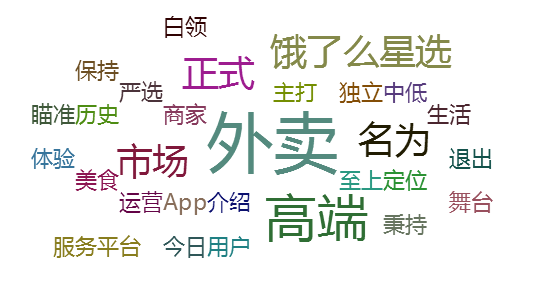 此次舆情事件中,高频词主要是:“外卖”、“高端”、“饿了么星选”、“市场”、“正式”等。