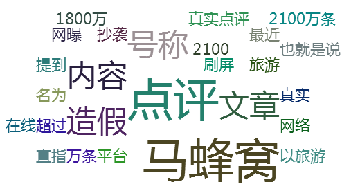 此次舆情事件中,高频词主要是:“马蜂窝”、“点评”、“造假”、“内容”、“文章”等。