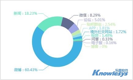 乐思软件舆情监测数据显示,截至目前此次舆情监测媒体构成类型中,排在采集来源榜前三位的是微博、新闻和微信。微博媒体是最重要的信息交流平台,数据占比为60.43%,新闻和微信分别占18.23%和8.29%。微博相关信息发布较多,舆情在微博上快速扩散。