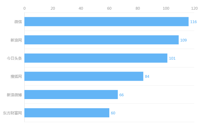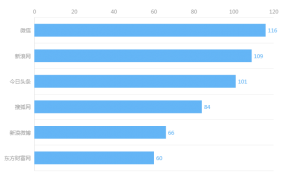 众多媒体平台中报道量第一的为微信,相关信息量116条。其次是新浪网,相关信息量109条。排行第三的为今日头条,相关信息量101条。