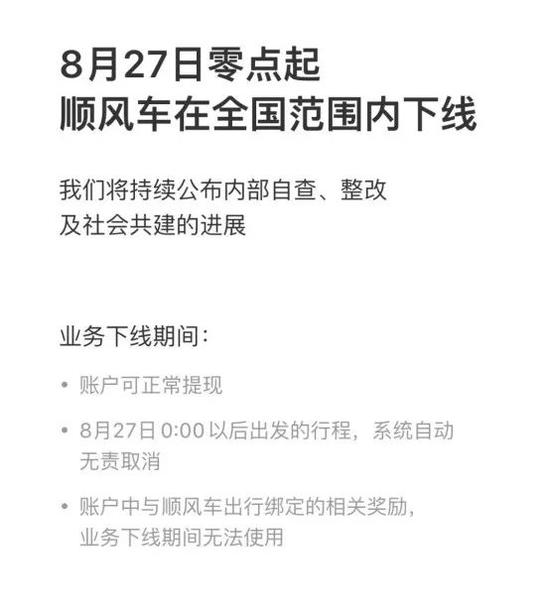 对此,滴滴表示已无限期下线整改顺风车业务,并将认真学习联合检查组的安全专项检查结果和整改要求,深刻反省并逐条贯彻落实,制定计划坚决整改。它还将积极组织驾驶员培训,并更加开放透明合作。