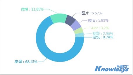 乐思软件舆情监测数据显示,截至目前此次舆情监测媒体构成类型中,排在采集来源榜前三位的是新闻、微博和图片。新闻媒体是最重要的信息传播平台,数据占比为68.15%,微博和图片分别占11.85%和6.67%。