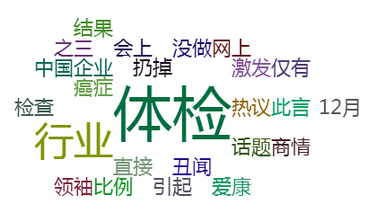 此次舆情事件中,高频词主要是:“体检”、“行业”、“丑闻”、“爱康”、“癌症”等。