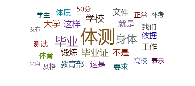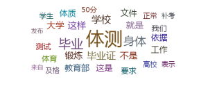 本次舆情事件高频词围绕体测,有毕业证、锻炼、身体,毕业等。