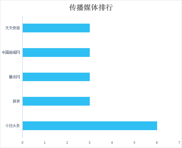 众多媒体平台中,今日头条属于传播第一梯队,平台相关信息量排名第一。新浪、腾讯、中国新闻网,天天快报并列传播第二梯队。