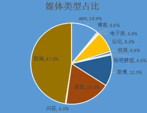 截至目前,通过媒体类型占比图可以看到,新闻是占比最多的来源媒体,占比高达47.5%,其次是微信,占比为18.1%,APP排在第三,占比为10.9%。