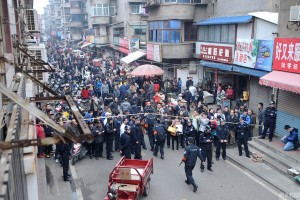 3月14日上午10时15分许,长沙市开福区伍家岭沙湖桥菜市场内,两名摊贩因纠纷引发互殴,其中一人被对方砍死,行凶歹徒逃跑过程中砍伤四名无辜 群众,其中两人当场致死。长沙警方快速反应,当即赶到现场处置,现场击毙行凶歹徒,并将两名伤者及时送往医院救治,后经抢救无效死亡。