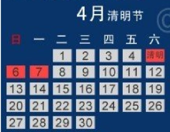 根据国务院办公厅通知精神,2014年清明节放假安排如下:4月5日(星期六,清明节)放假,4月7日(星期一)补休。