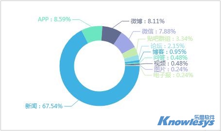 乐思软件舆情监测数据显示,截至目前此次舆情监测媒体构成类型中,排在采集来源榜前三位的是新闻、APP和微博。新闻数据占比为67.54%,APP和微博分别占8.59%和8.11%。
