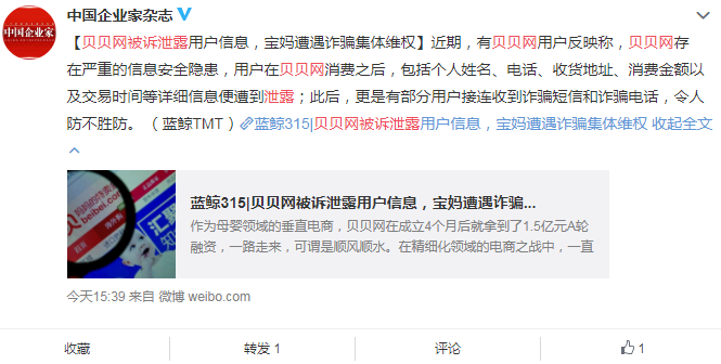 3月7日,乐思舆情监测系统 监测到 @中国企业家杂志 发布的与贝贝网相关的重点舆情。