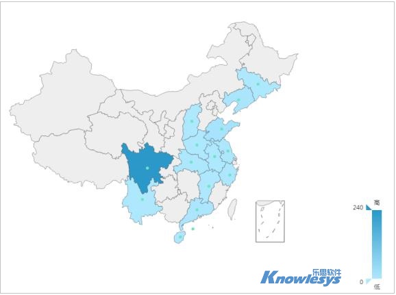 截至目前此次舆情全国分布范围较广,其中舆情热度最高的地区为四川省。