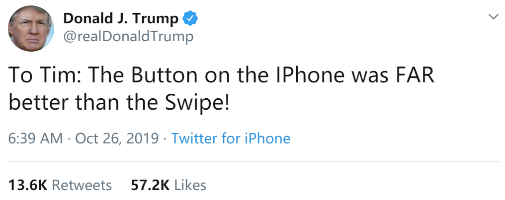 特朗普其实日常主要工作是苹果手机可用性测试,有空时才当当总统!