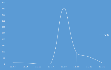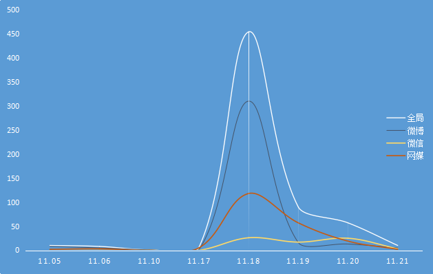 从总体舆情走势来看,11月5日舆情发生期后的发展平缓。发酵时间较长,直到17日权威媒体发布相关信息,并引出“两年关店超200家”的话题,导致舆情爆发,引发网友激烈讨论,18日舆情到达峰值,后随着酒店发布回应,其余热点的覆盖,舆情进入回落期。