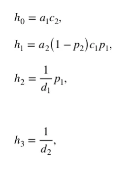 (2)由上文数学符号的定义及函数h0,h1,h2,h3的表达式可知,h0,h1,h2,h3 均为时间t的函数,即h0(t),h1(t),h2(t),h3(t)。但该函数的解析式由现有的信息难以确定。为了简化模型,我们假设函数hi(t)的解析式均为关于时间t的一元高次函数: