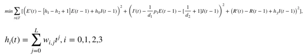 经过这样的而简化,疫情传播动力学模型中就只剩下未知参数wi,j 。我们构建如下参数辨识问题: