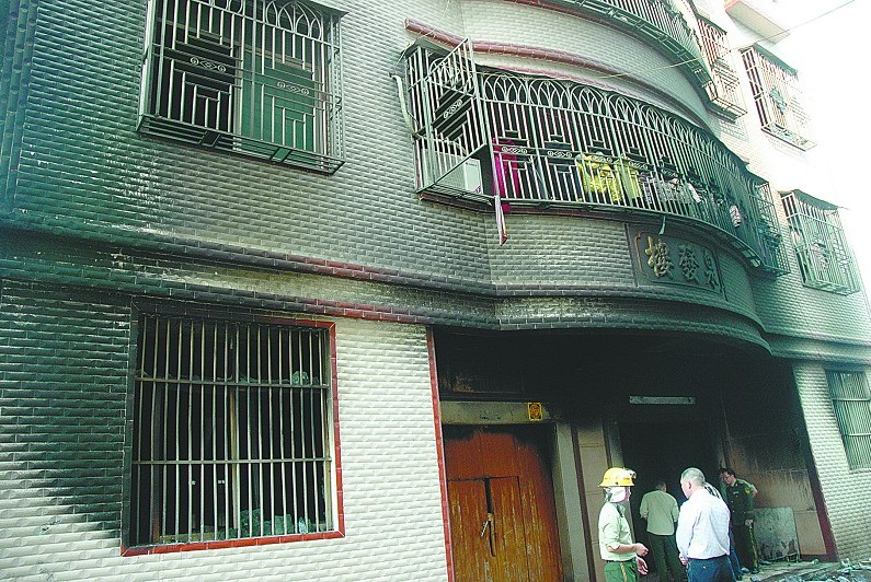 3月26日,消防人员在出事地点勘察。当日13时27分,广东普宁市军埠镇一家主要生产内衣的家庭作坊发生火灾。13时54分,火势得到扑灭,现场解救出17名群众,15人不同程度受伤送医院救治,其中11人因窒死亡。
