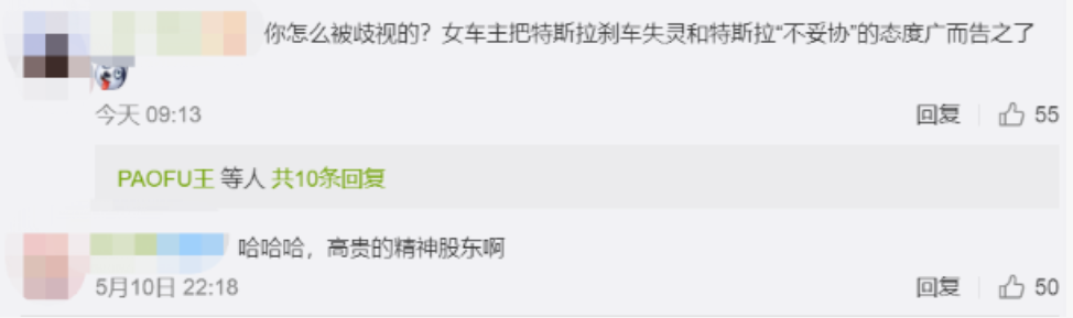 “维权女司机你听着,你这种维权方式严重影响了我们所有特斯拉车主在社会上的形象,本来我们大家都是高知高收入群体,现在给你搞得大家都觉得特斯拉车主只会撒泼打滚。”