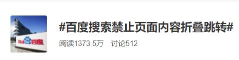 #百度搜索禁止页面内容折叠跳转#微博话题登上热搜,其中阅读1373.5万,讨论512,引起网友热议。