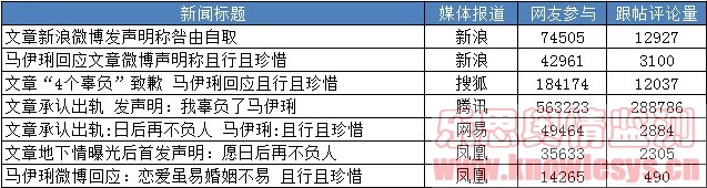 31日,文章首度就与姚笛劈腿事件做出道歉声明,把事件舆论推向了高潮。从乐思舆情监控系统31日的监测数据可知,截至当天17时,新浪、网易、搜狐、凤凰、腾讯“文章道歉声明”的报道吸引超过100万网友参与,评论近35万条。从舆论内容来看,文章的道歉并没有赢得舆论的谅解和支持,相反让自己和姚笛成为了舆论口水的靶心。