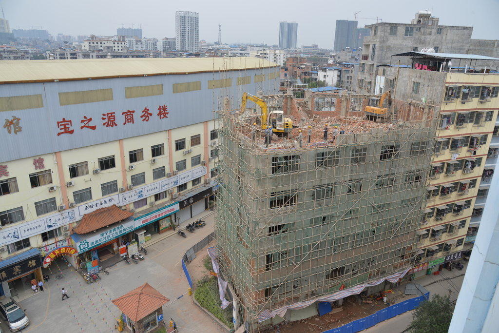 18、南宁钩机“空降”楼顶拆除“空中楼阁”