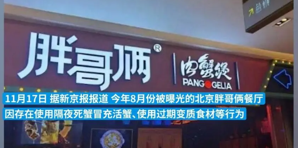乐思网络舆情发现,11月17日,#北京胖哥俩使用隔夜死蟹被罚50万#登上热搜。北京商报记者从天眼查获悉,“胖哥俩肉蟹煲”关联公司北京宏聚餐饮有限公司新增行政处罚信息,北京市丰台区市场监督管理局对其罚款50万元并没收违法所得6974元。