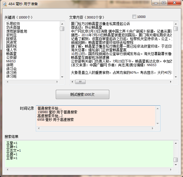 最新纪录: 在3万字的文章中查找1万个关键词的出现次数, 仅需6.9毫秒