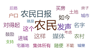 农民、农民日报、媒体、随便等词值得关注。其中涉及信息包括“为农民发声,如今这样的媒体不多了”、“反正户口不要随便迁,农村的土地是集体所有!”