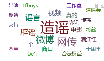 从乐思舆情监测系统解析的微博云图来看,“造谣”、“网传”、“辟谣”、“微博”、“谣言”等是提及的高频词汇。