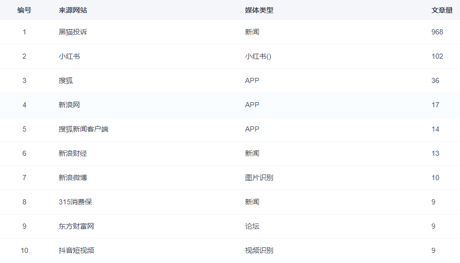 从来源网站来看,新闻平台主要是新浪网的黑猫投诉平台。