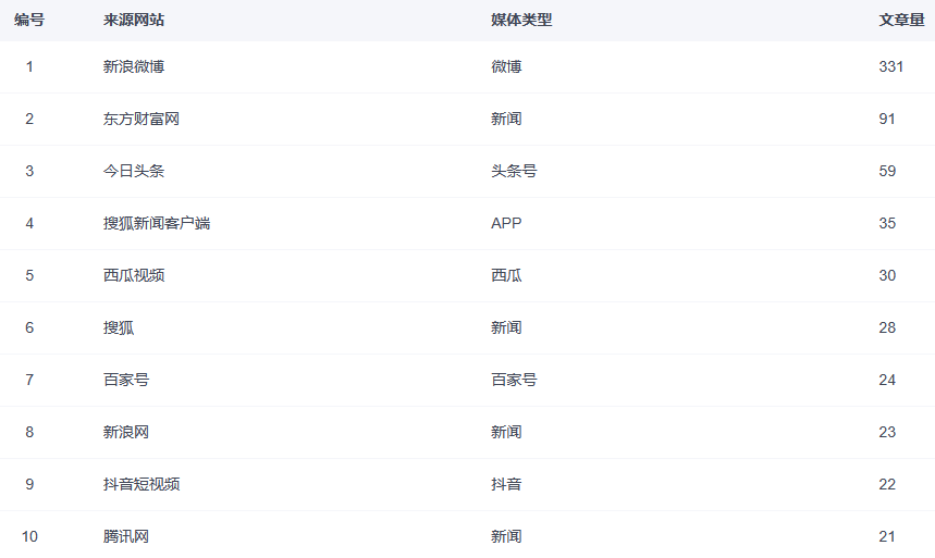 本次舆情信息主要分布在新浪微博、东方财富网、今日头条、搜狐新闻客户端以及西瓜视频等。