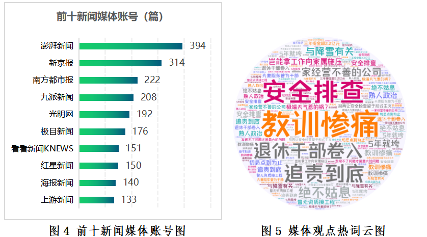 四是要求彻查事故原因和责任。如“4.3亿巨额资金建设的体育馆,竟然被大雪压塌了。滑天下之大稽!深挖彻查!!”、“上次齐齐哈尔坍塌事件责任人处理了没”、“一查到底,以人民的名义要求!”。著名KOL胡锡进也认为,“黑龙江的两次事故显示了体育馆安全的特殊薄弱,相信公众绝不会接受未来再出第三起体育馆坍塌事故,无论它发生在哪里”。
