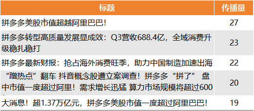 从话题传播来看,拼多多与阿里巴巴的市值对比成为热点话题之一,根据乐思舆情资料信息采集得出三大电商平台拼多多、阿里巴巴和京东的营收增速对比图如下: