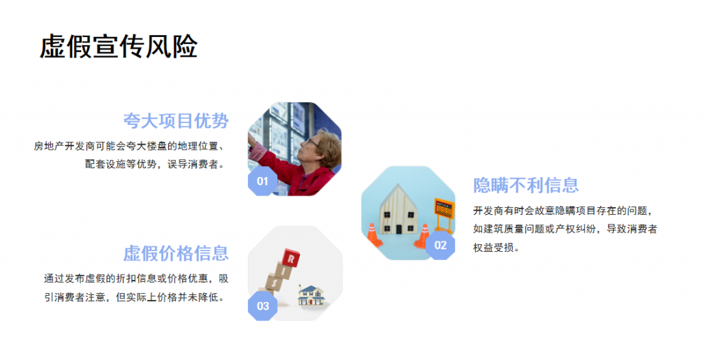 - 3. 虚假宣传风险: 夸大宣传、隐瞒不利信息等行为,容易引发消费者不满和投诉,甚至面临法律诉讼。