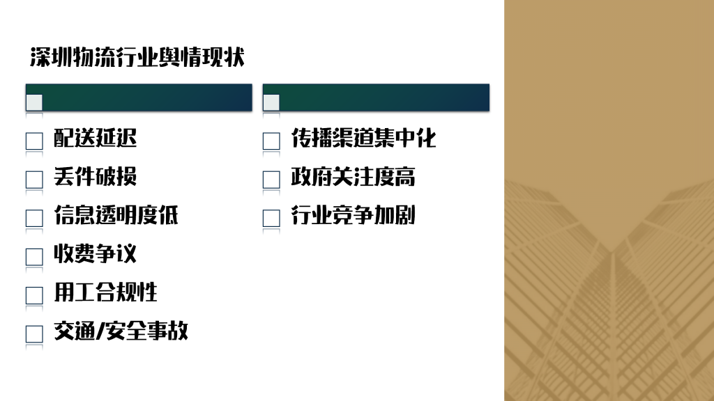政府关注度高:深圳“20+8”产业集群政策推动电商物流发展,但末端服务质量多次被市监局约谈整改。