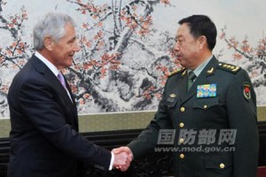 应中国国防部长常万全邀请,美国防长哈格尔4月7日中午抵达青岛并开始了其3天访华行程。当日下午,哈格尔一行参观了辽宁舰。“中国向美国防长炫耀航母”。法新社7日以此为题报道说。文章援引一名五角大楼高级官员的话说,此次参观是哈格尔主动提出的,并得到中方同意。