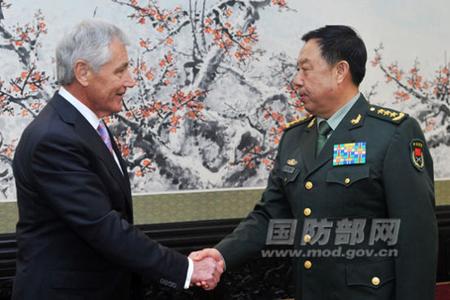 中央军委副主席范长龙今天下午在八一大楼会见了来访的美国国防部长查克·哈格尔一行。
