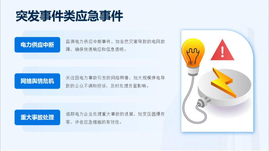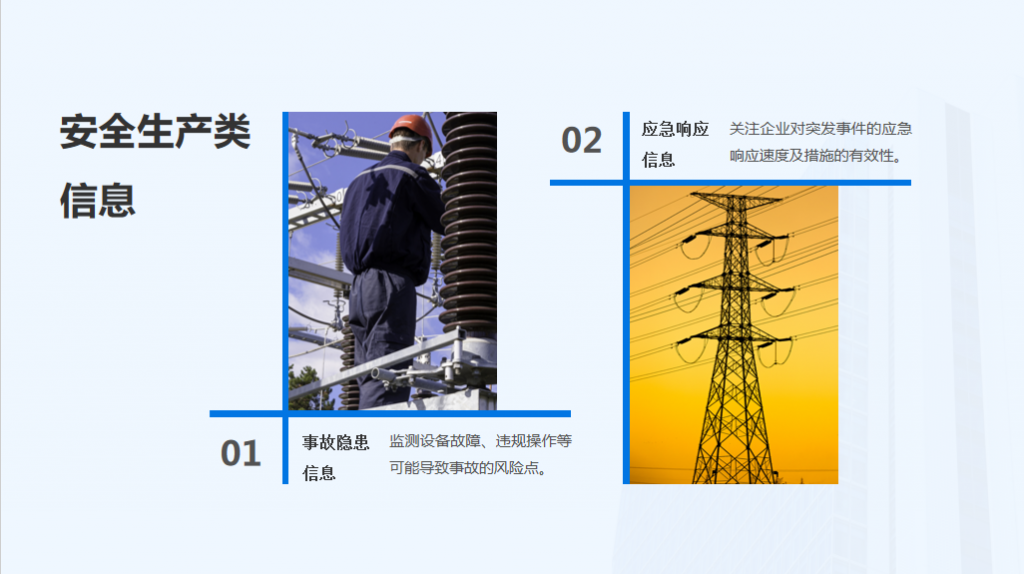 - 安全生产类:电网故障、停电事故、设备安全隐患等信息;