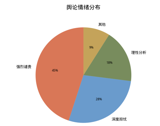 舆论情绪以强烈谴责(45%)和深度担忧(28%)为主,理性分析占18%。代表性观点包括要求严惩涉事企业、追问监管责任、反思行业生态、呼吁制度完善等。
