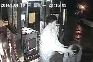 据当日的监控视频拍摄的画面显示,20时14分,一名身穿夹克衫的男子径直走到保安岗亭,按动按钮开启了入车闸道。据谭明说,此人便是当日的男车主。监控显示,谭明重新关闭了入车闸道,车主再次走过来。他伸手将谭明桌上的记录本向后丢了出去,再次按动了入车闸道按钮,并伸出胳膊招手示意其妻开车进入。而他身后的谭明再次按动了按钮关闭了入车闸道,见状,车主猛地抓起谭明头上的帽子,丢在了地上。