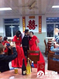 近日,网友@Candy5411在论坛上爆料说,宁波象山一男子大摆婚宴,席上搂着两个老婆,婚礼现场有图有真相。浙江在线记者向当地政府部门和派出所核实,这事居然是真的!