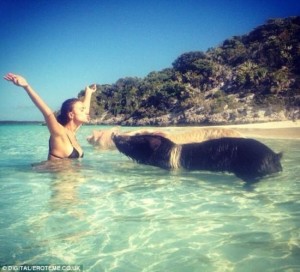 18、国际名模与猪游泳:穿火辣比基尼大秀事业线