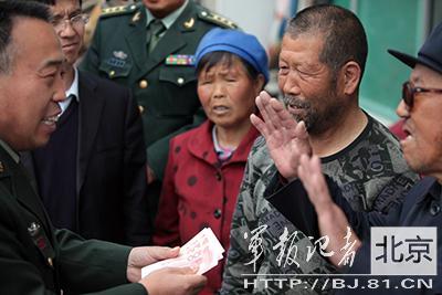 “我们替先辈们还情来了!”4月12日,山西娄烦县人武部政委纪根有带领官兵,把3袋面粉、两袋大米、一桶油和2000元现金,悉数交到娄烦县择石村周区贵、周诚贵兄弟俩手中。