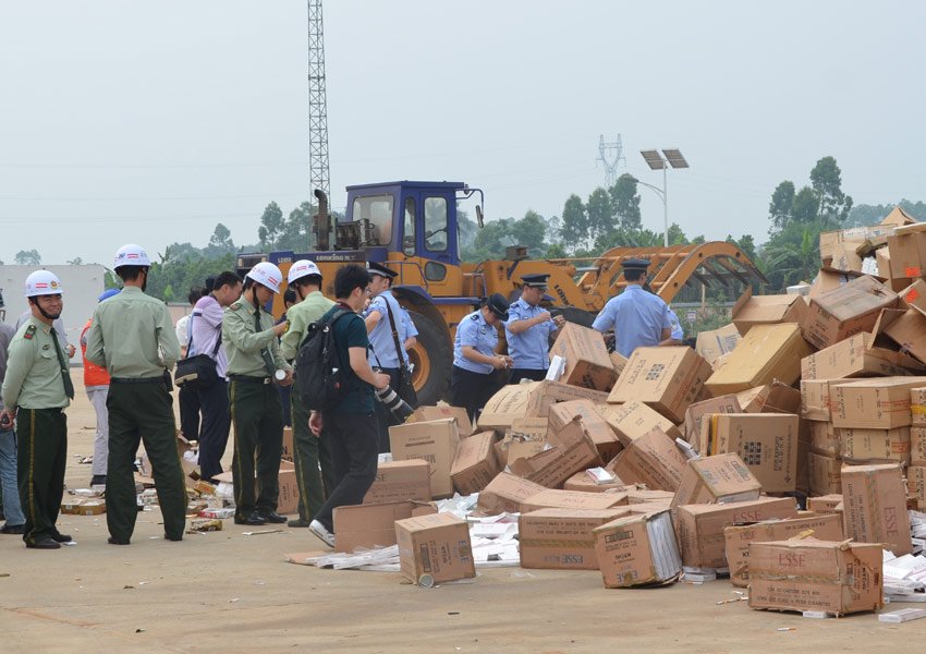 4月29日,海关总署和国家烟草专卖总局首次联合在广东湛江公开销毁走私罚没烟375890万条,销毁的烟涉及30余种品牌,价值2206.96余万元。