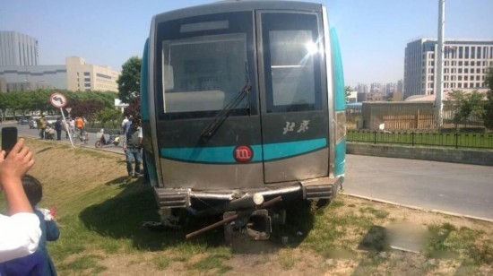 5、北京地铁四号线测试车辆冲出轨道冲进绿地