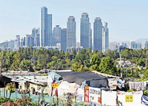 因“土豪”形象蜚声全球的韩国首尔江南区,却因为一个“穷”字产生了巨大争议。在这片“富人森林”中居然藏着韩国最有名的贫民窟——九龙村。这里不仅水沟中污水横流,就连空气中也弥漫着异常的味道,只见连片的低矮小屋出现在眼前,很多房屋异常简陋,只是用木板和防水布搭建而成。贫民窟内没有像样的道路,垃圾随处可见,很多简易房为了取暖甚至外面钉上破旧的毡布,造成了极大的火灾隐患。