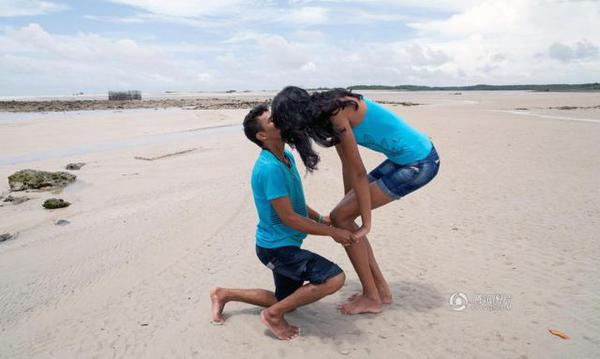 高妹也有春天!在巴西萨利诺波利斯,身高1.6的弗兰奇纳尔多·达席尔瓦·卡瓦略在沙滩上向他的女友,“世界最高少女”、17岁巴西女孩、服装模特埃利萨尼·达克鲁斯·席尔瓦求婚。两人身高相差40厘米。站着接吻时,席尔瓦要弯下腰,卡瓦略要踮起脚。
